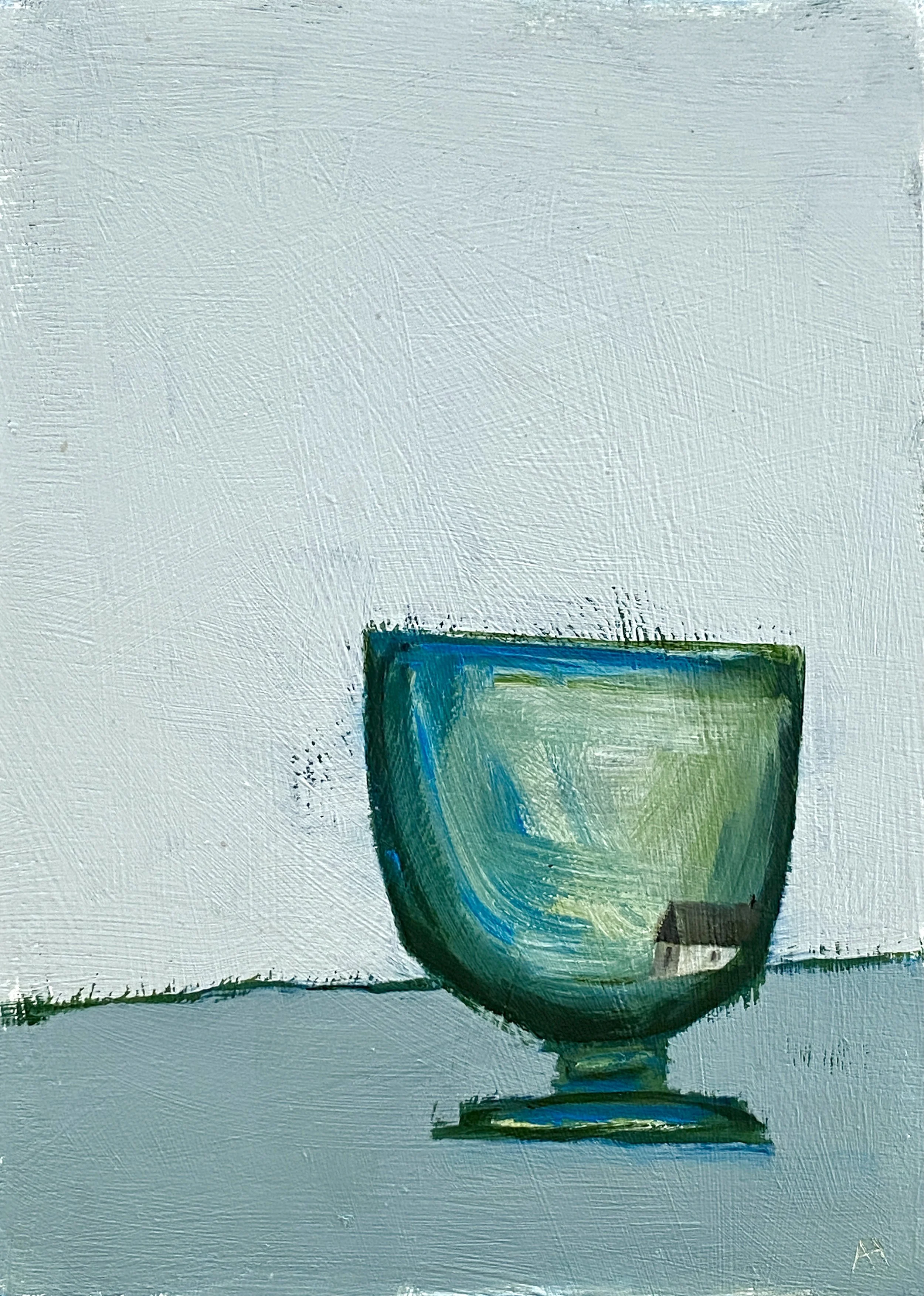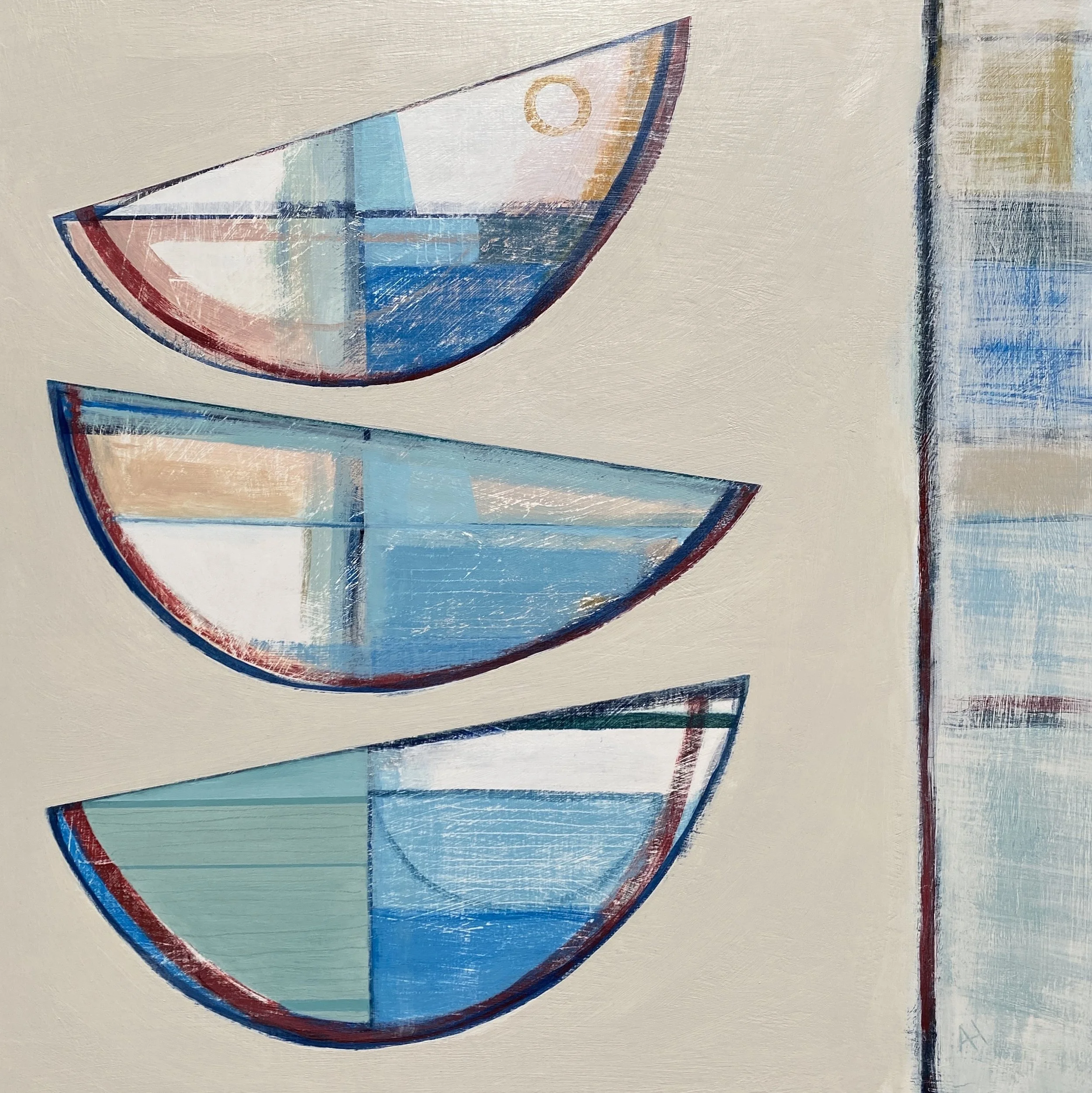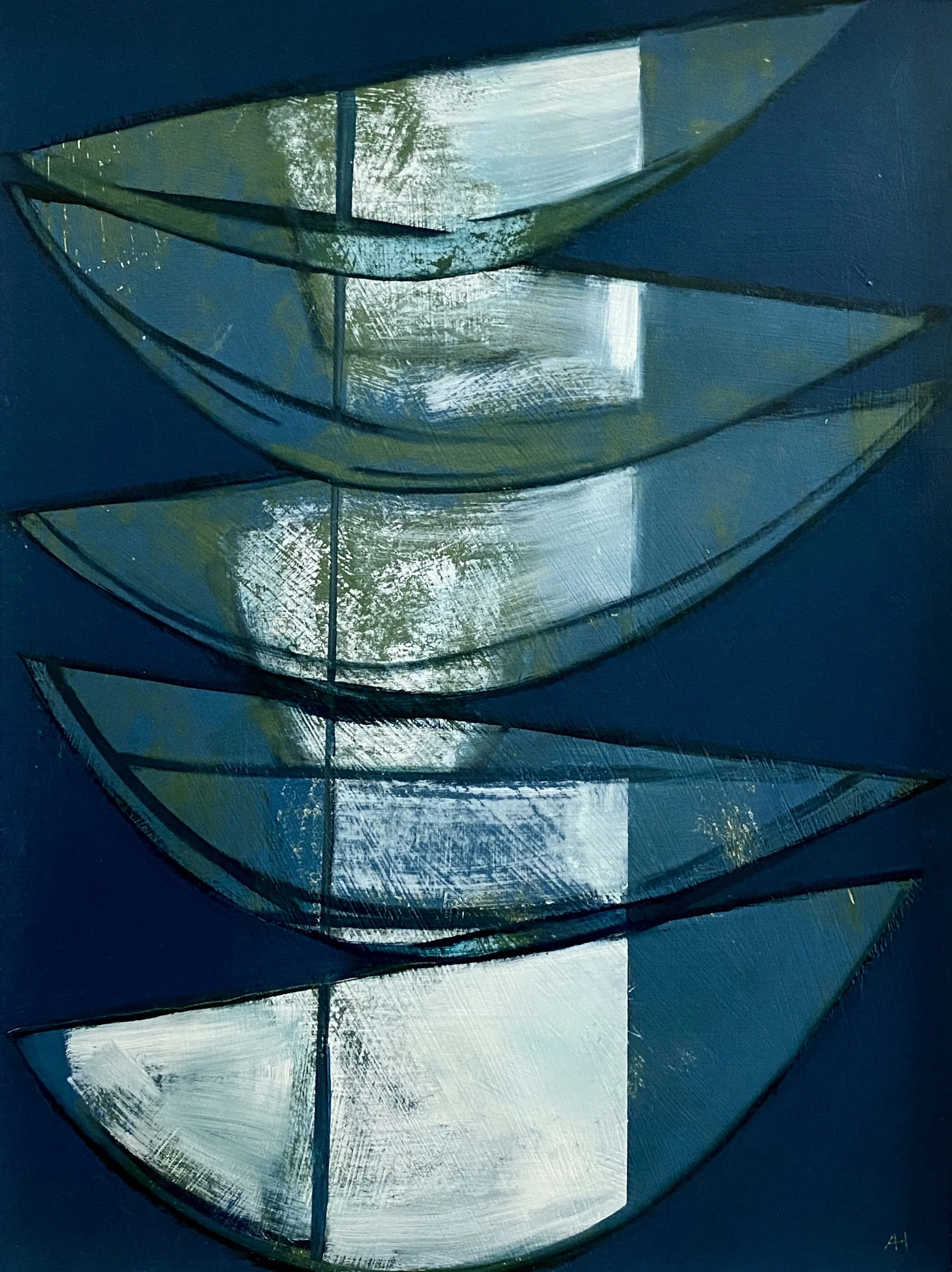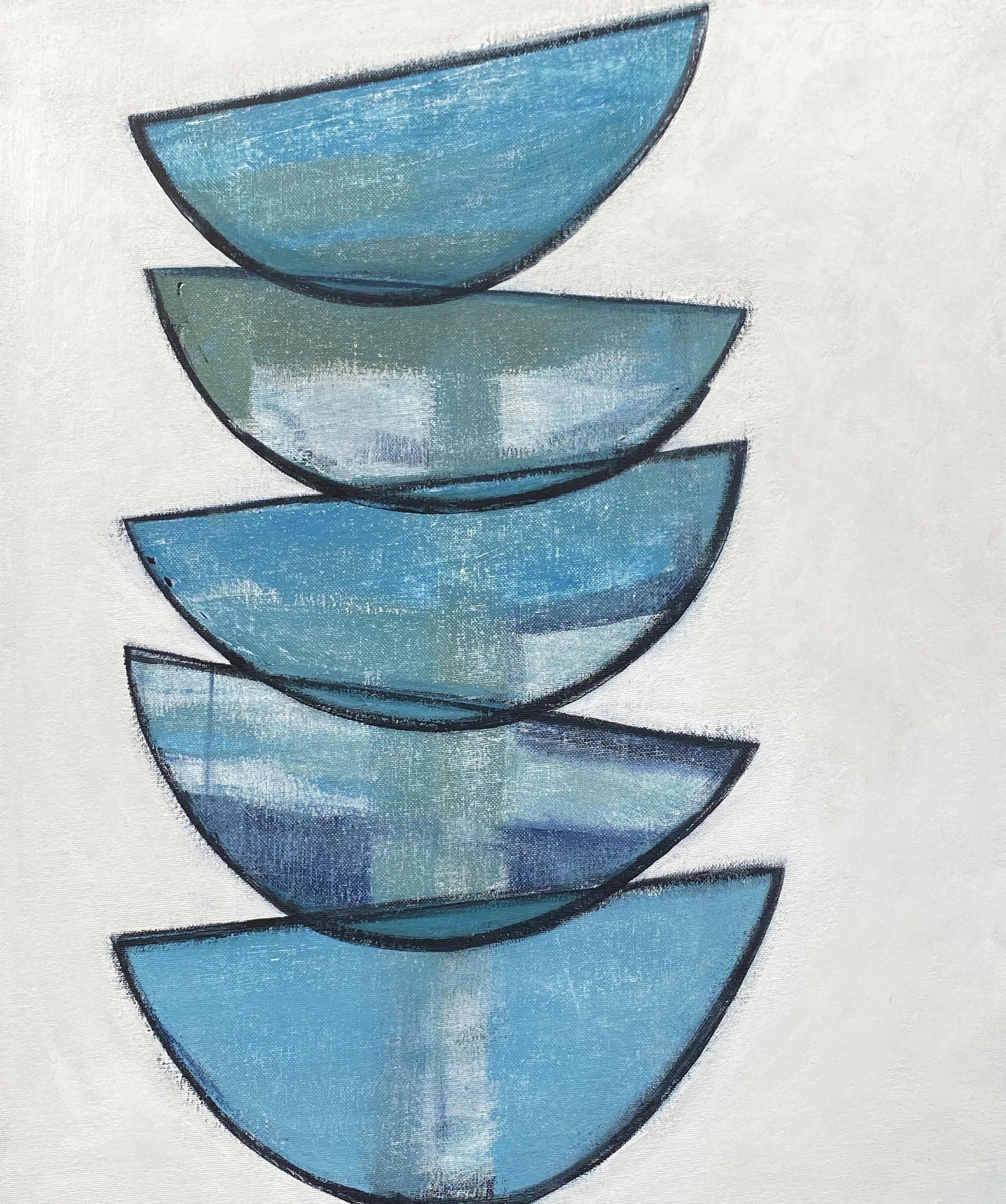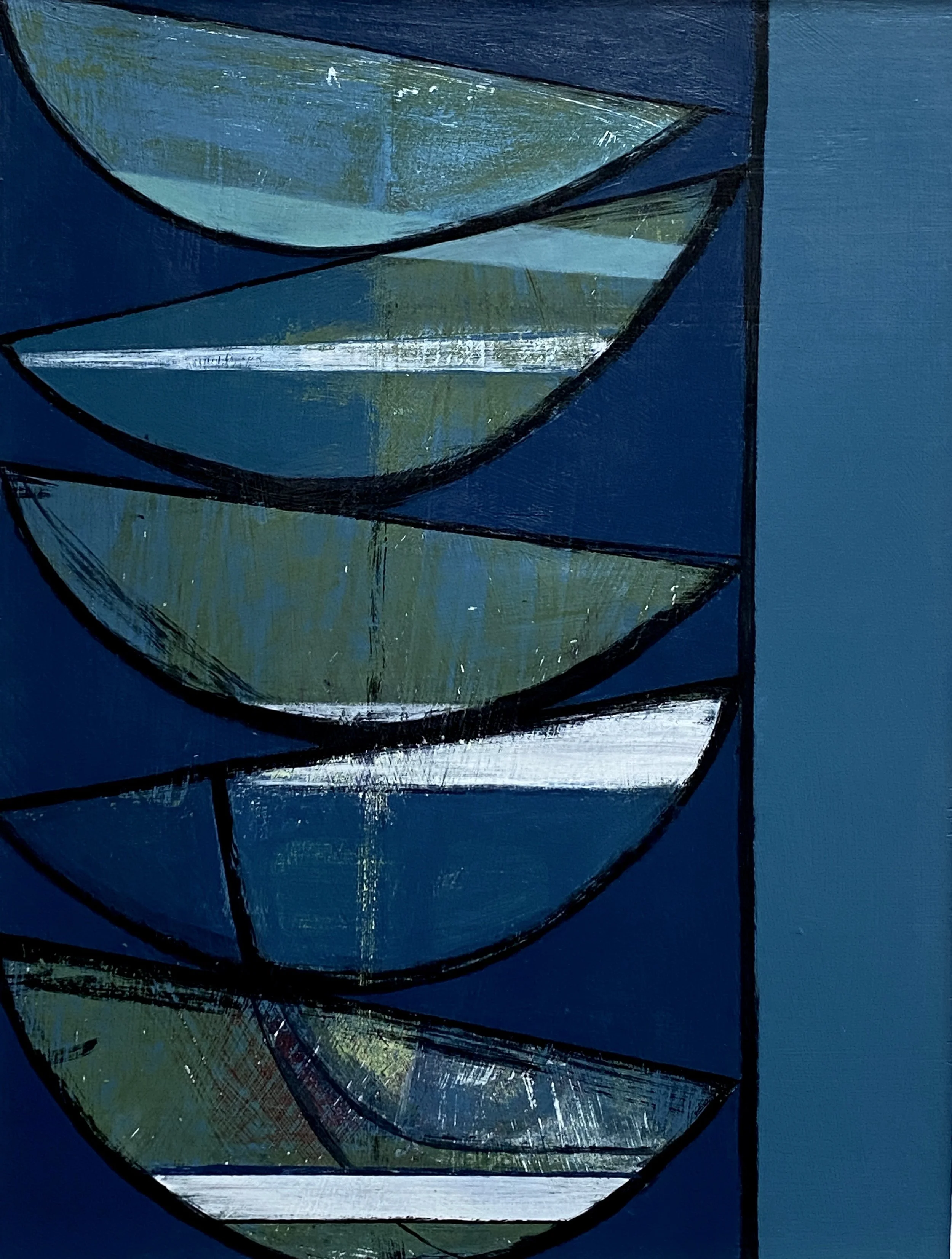 Finding a Balance 5 Vessels II - Blue Stripe - oil on wood - 47x37cm - Framed